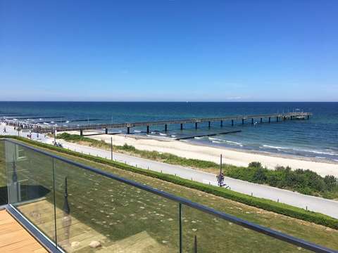 Von dem in richtung westen gelagerten balkon können sie die aussicht auf die ostsee genießen.